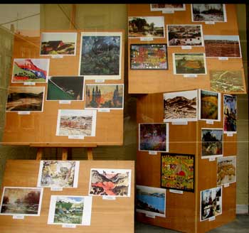 de obras de arte de diversos artistas. Cartón pluma y madera.