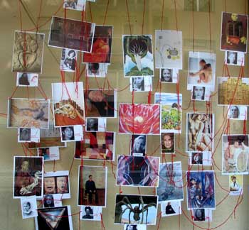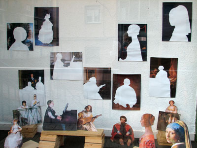 de obras de arte de diversos artistas. Cartón pluma y madera.