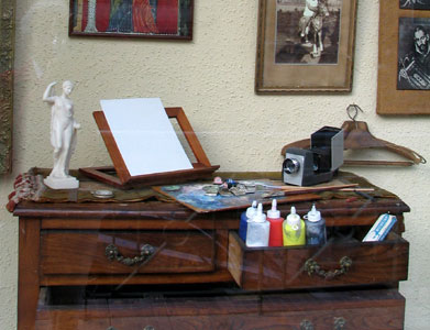 de pintor s. XIX. Armario con cajones de madera, fotos antigüas,